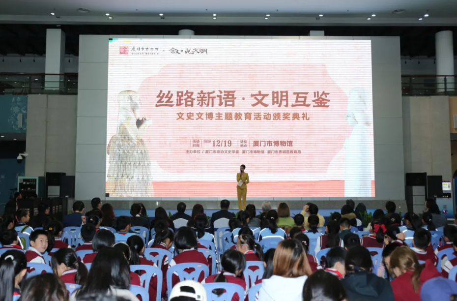 12月19日下午,由市政协文史学委、市博物馆与思明区教育局联合主办的“丝路新语·文明互鉴——文史文博主题教育活动颁奖典礼”在市博物馆顺利举行。市政协副主席吴金喜,市政协文史学委、市文旅局、思明区教育局及市博物馆相关负责同志,与思明区11所学校的师生代表共同出席了本次活动。