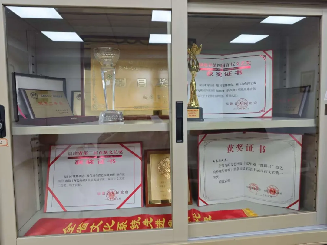 多年来,海峡两岸非常熟悉的歌剧《阿美姑娘》、歌仔戏《邵江海》《蝴蝶之恋》《侨批》、高甲戏《大稻埕》《阿搭嫂》、南音《长恨歌》等优秀剧目,均出自厦门市台湾艺术研究院创作人员之手,为厦门市赢得四个“五个一工程”优秀作品奖、四个“文华奖”、多个“中国戏剧节优秀剧目奖”以及“中国戏剧奖·曹禺剧本奖”、“金鸡奖”最佳戏曲片提名等诸多荣誉。厦门市台湾艺术研究院深耕文化发展,是厦门舞台艺术创作的“研发中心”,这些成绩离不开长期以来研究院与文艺院团的密切配合,以及台前幕后的同仁们对待两岸艺术创作客观审慎的思考和几近苛刻的雕琢。