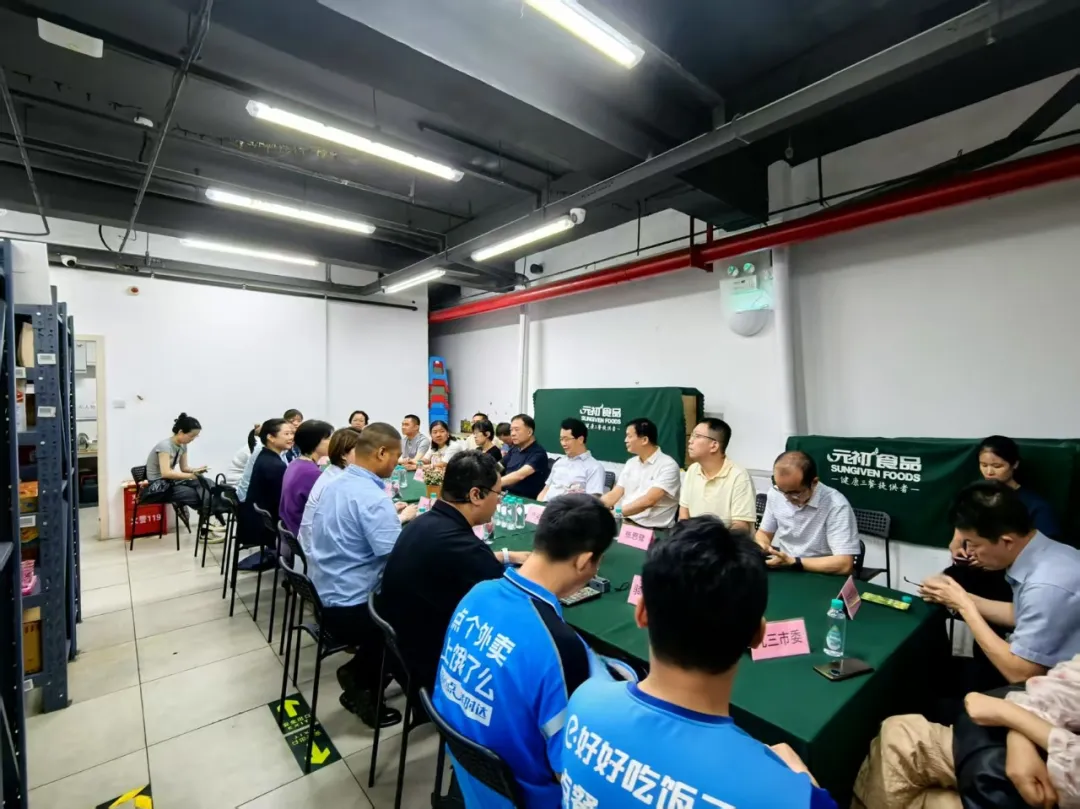 随后,监督小组前往元初食品湖滨六里前置仓调研并座谈。监督小组与元初食品管理方、饿了么元初配送团队负责人及一线骑手开展深入交流,了解饿了么与元初食品的合作模式、饿了么对专送和众包骑手的管理模式、劳动合同签订方式、劳动强度、社会保险缴交情况及在厦食宿、子女教育等需求。
