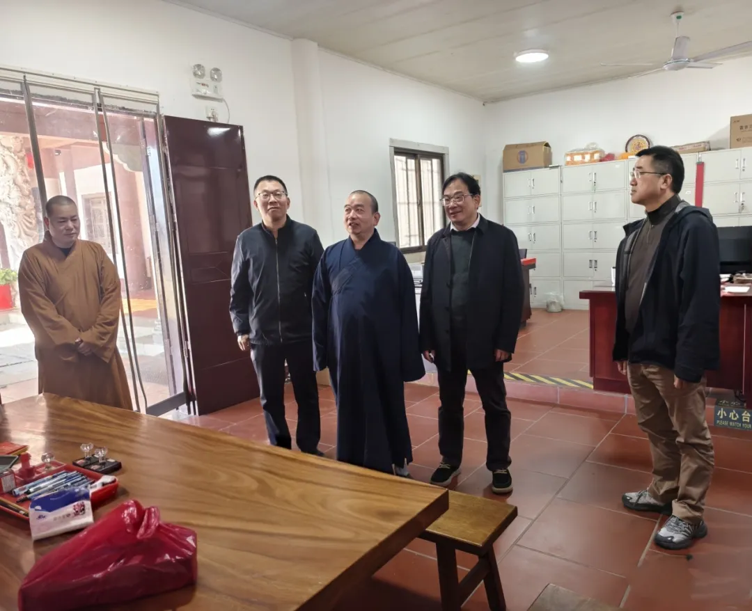 1月8日,市政协副主席黄国彬带队前往同安区开展调研,实地走访佛心寺、太华岩寺和铜钵岩寺,了解宗教活动场所规范化建设情况。佛心寺住持竺冰法师、太华岩寺住持义杰法师、铜钵岩寺住持镜悟法师分别介绍寺院建设管理情况。