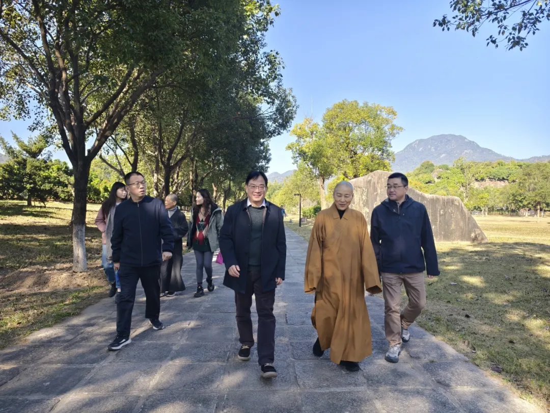 在太华岩寺,调研组听取义杰法师介绍寺院历史沿革、遗迹保护措施、日常管理流程及法事活动组织情况。该寺作为莲花山重要宗教文化遗迹,因理学大师朱熹担任同安主簿期间珍存墨宝而闻名,自然景观与人文底蕴交相辉映。黄国彬强调,要深挖历史文化内涵,推动我国宗教同中华优秀传统文化相融合。