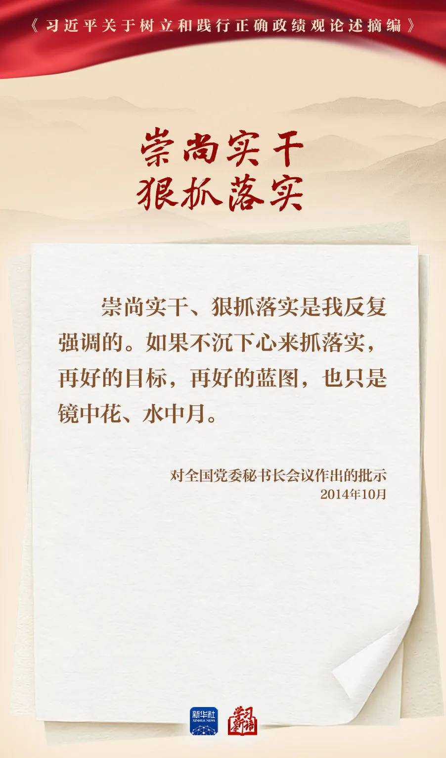 树立和践行正确政绩观学习教育正在全党开展。真抓实干,是共产党人的鲜明品格,也是成事之道。我们选取《习近平关于树立和践行正确政绩观论述摘编》一书中的相关重要论述,一起学习领会。