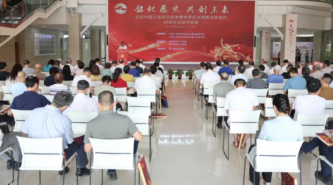 刘献祥在致辞中指出,要深入学习贯彻习近平总书记在纪念中国人民抗日战争暨世界反法西斯战争胜利80周年大会上的重要讲话精神,传承和弘扬伟大抗战精神,踔厉奋发、勇毅前行,广泛凝聚起实现中华民族伟大复兴的智慧和力量。希望通过举办此次书画展,以笔为墨、以丹青为语,能够唤起大家对历史的敬畏、对和平的珍视,让两岸同胞的心贴得更紧,团结奋斗的劲鼓得更足,让伟大的抗战精神在新时代绽放更璀璨的光芒。